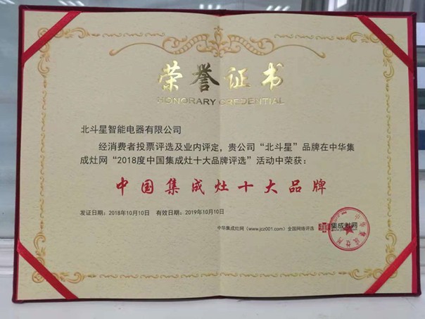 再傳捷報 | 北斗星榮獲”中國集成灶十大品牌“