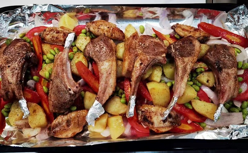 先蒸后烤,蒸菜新鮮出爐之后,再烤上一盤羊小排!用做一個菜的時間可完成8道美味,簡直絕了!