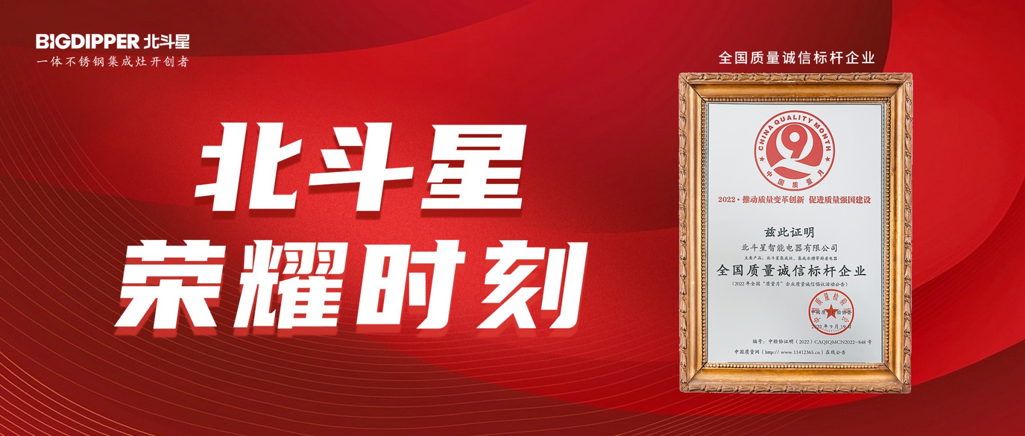 此次北斗星入選 2022 年度中國質(zhì)量月 " 全國質(zhì)量誠信標(biāo)桿 " ,是中國質(zhì)量檢驗(yàn)協(xié)會對北斗星集成灶產(chǎn)品和服務(wù)的高度認(rèn)可。
